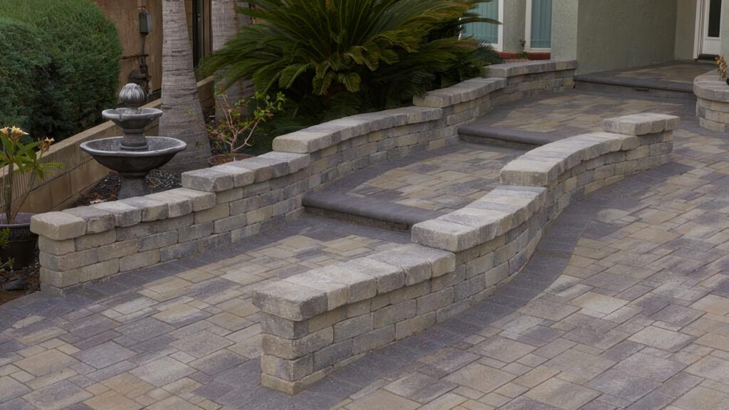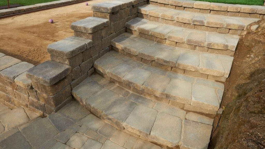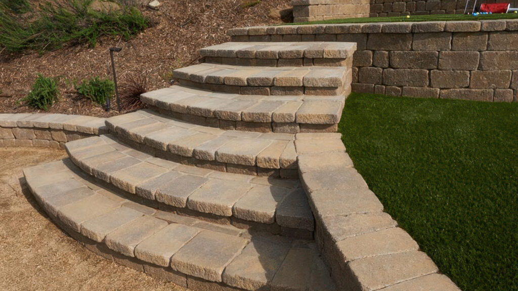 Rustic Wall Stone & Bullnose steps with Heartland Paving Stones